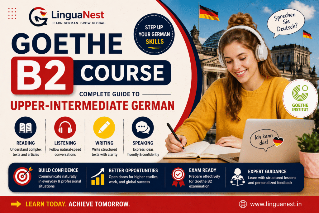 Upgrade your German skills with a structured Goethe B2 course. Learn how to improve speaking, writing, listening, and grammar to communicate confidently in real-life situations.